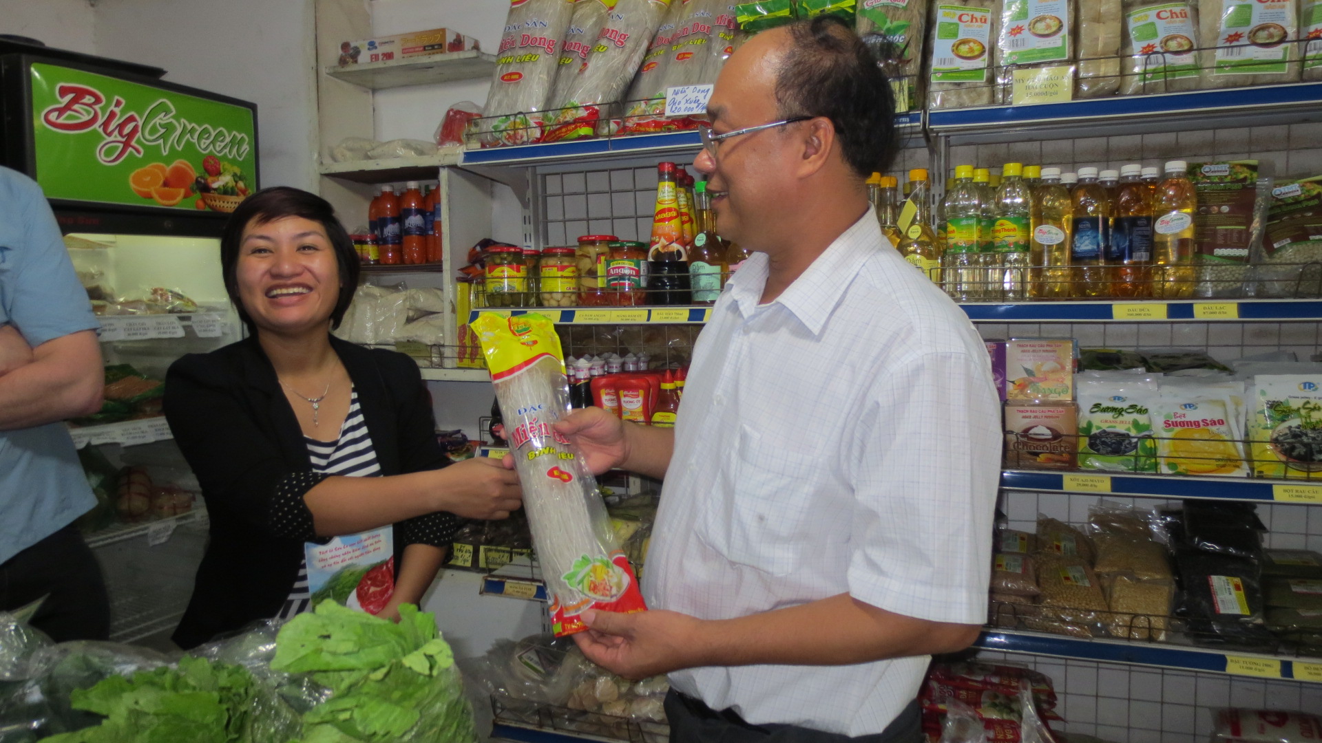 thăm và giới thiệu sản phẩm miến dong Bình Liêu tại cửa hàng Biggreen